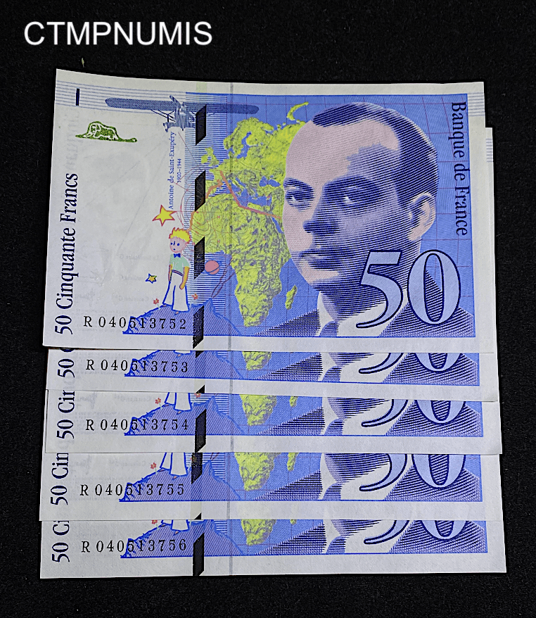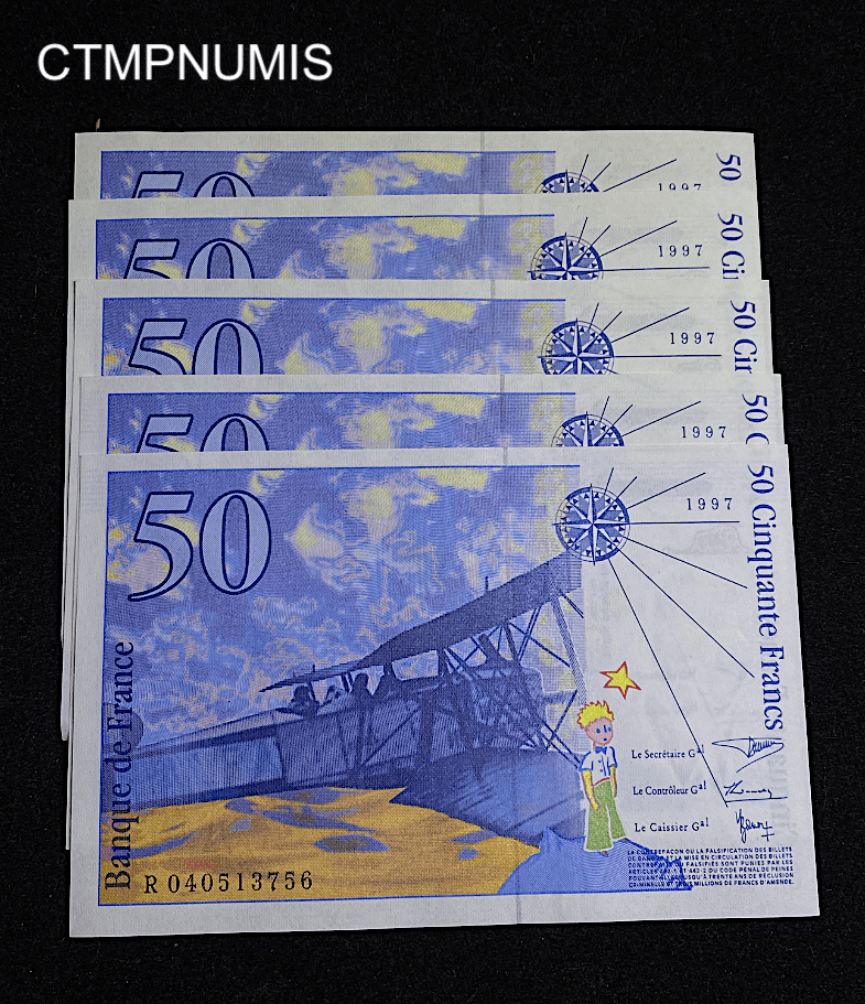 BILLET FRANCAIS 50 FRANCS SAINT EXUPERY 1997 NEUFS LOT DE 5 EXEMPLAIRES