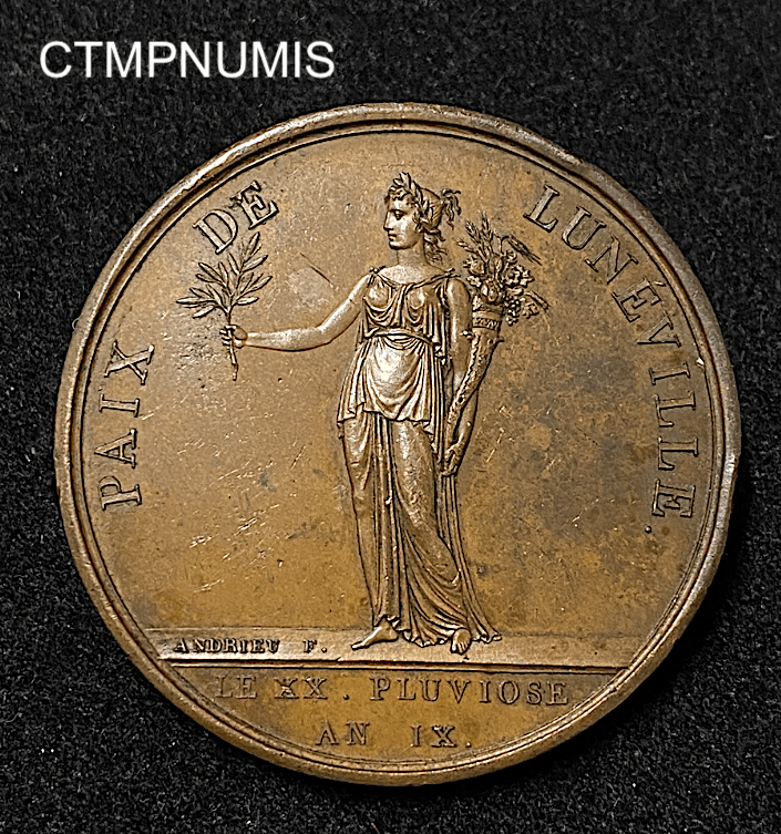 MEDAILLE BRONZE NAPOLEON I° TRAITE DE LUNEVILLE AN IX 1801 SUP