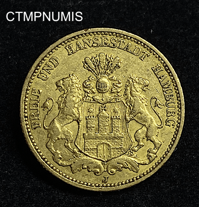 • ,MONNAIE,HAMBOURG,20,MARK,OR,1876, MONNAIE ALLEMAGNE 20 MARK OR HAMBOURG 1883 985.00€