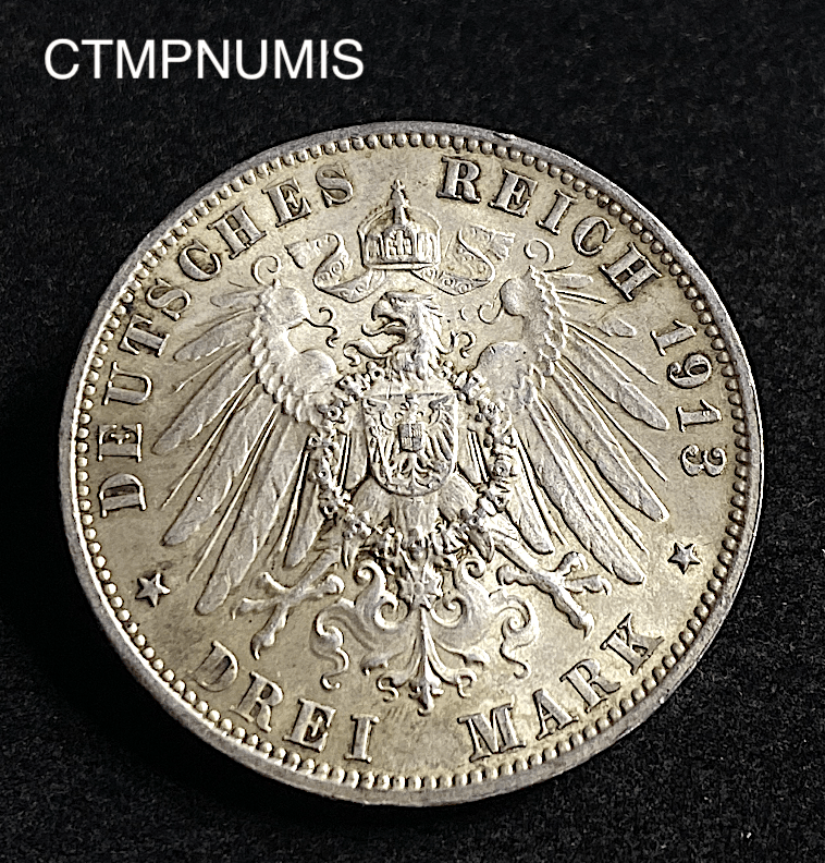• ,MONNAIE,ALLEMAGNE,SAXE,3,MARK,ARGENT,1913, MONNAIE ALLEMAGNE 3 MARK ARGENT SAXE 1913 E SUP 35.00€