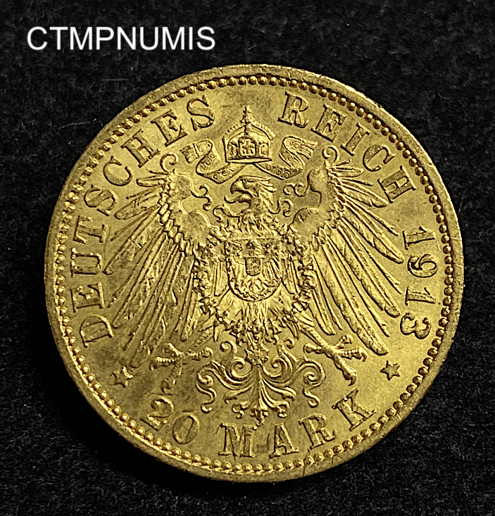MONNAIE ALLEMAGNE SAXE 20 MARK OR 1913 E SUP
