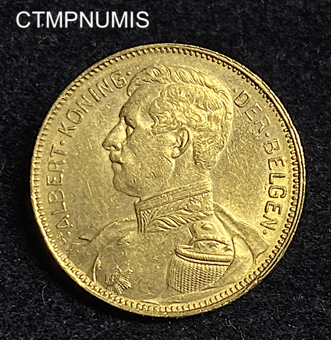 MONNAIE BELGIQUE 20 FRANCS OR ALBERT 1914 FLAMAND