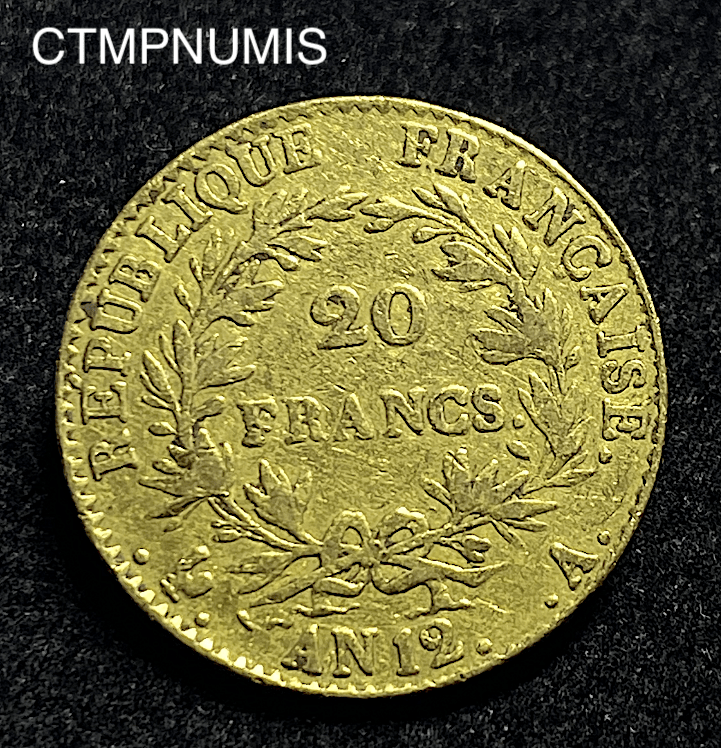 MONNAIE CONSULAT 20 FRANCS OR BONAPARTE PREMIER CONSUL AN 12 A PARIS