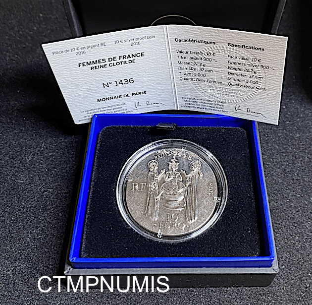 MONNAIE DE PARIS 10 EURO ARGENT REINE CLOTILDE 2016 FDC 22,2 gr