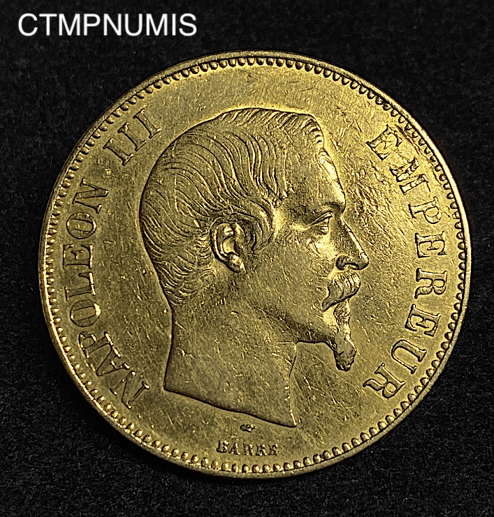 MONNAIE EMPIRE 100 FRANCS OR NAPOLEON III TETE NUE 1855 A PARIS