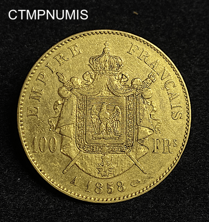 MONNAIE EMPIRE 100 FRANCS OR NAPOLEON III TETE NUE 1858 A PARIS