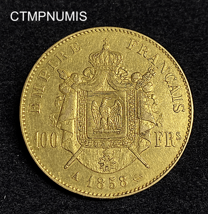 MONNAIE EMPIRE 100 FRANCS OR NAPOLEON III TETE NUE 1858 A PARIS