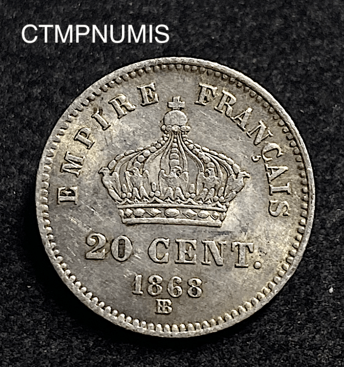 MONNAIE EMPIRE 20 CENTIMES ARGENT NAPOLEON III 1868 BB STRASBOURG SUP