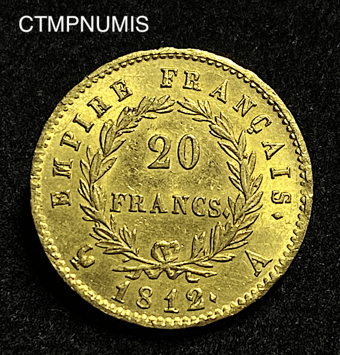 MONNAIE EMPIRE 20 FRANCS OR NAPOLEON I° EMPEREUR 1812 A SUP