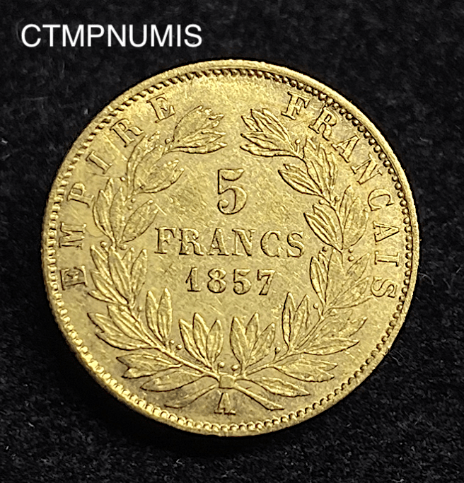 MONNAIE EMPIRE 5 FRANCS OR NAPOLEON III TETE NUE 1857 A PARIS
