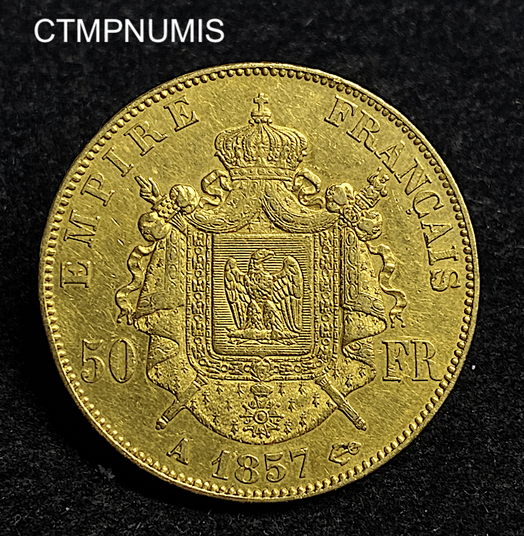 MONNAIE EMPIRE 50 FRANCS OR NAPOLEON III 1857 A PARIS