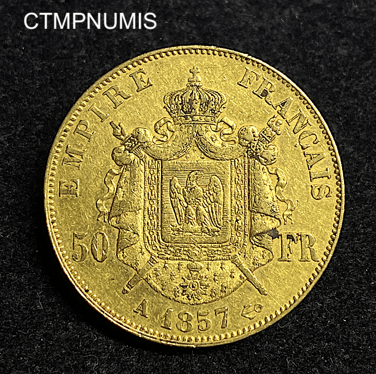 MONNAIE EMPIRE 50 FRANCS OR NAPOLEON III 1857 A PARIS