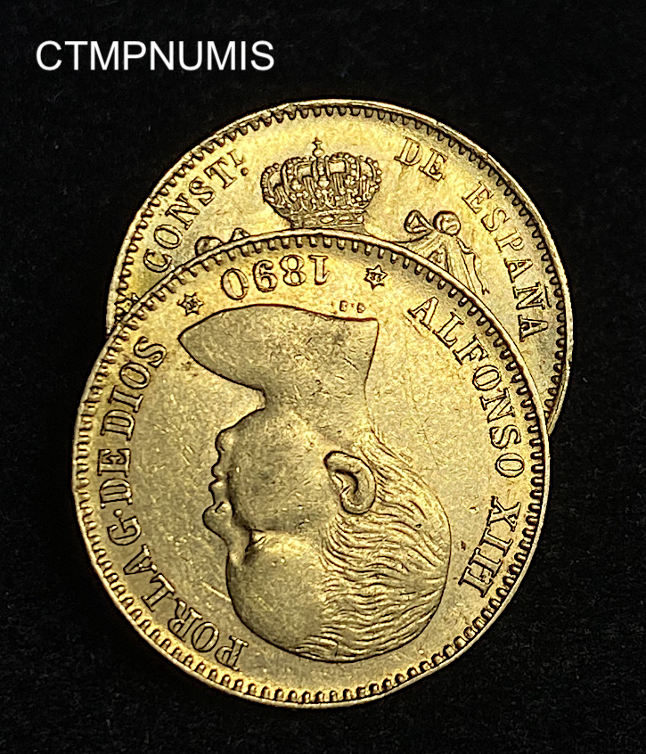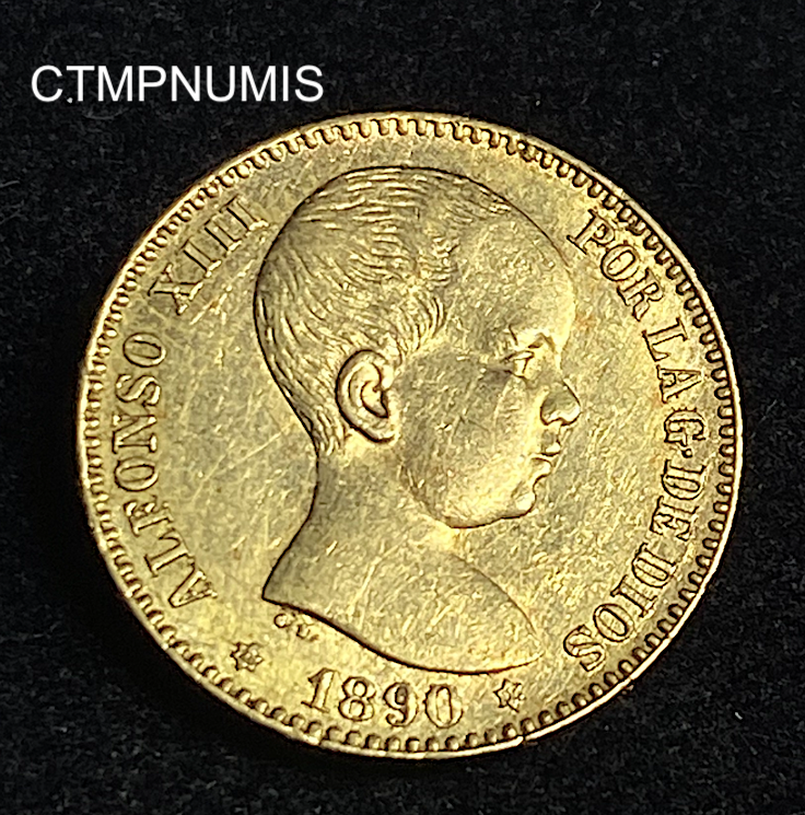 ,MONNAIE,ESPAGNE,20,PESETAS,OR,ALPHONSE,1890,