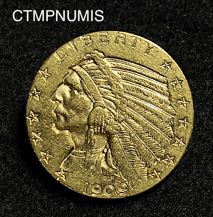 MONNAIE ETATS UNIS 5 DOLLAR OR TETE INDIEN 1909 D DENVER