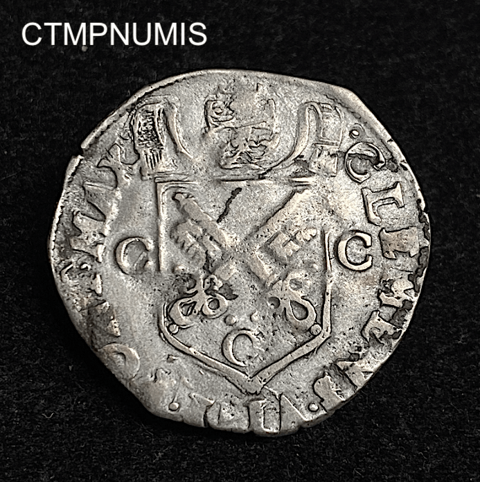 MONNAIE FEODALE COMTAT VENAISSIN DOUZAIN BILLON PAPE CLEMENT VIII 1594