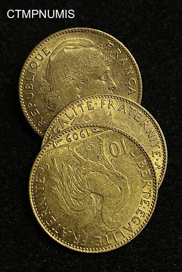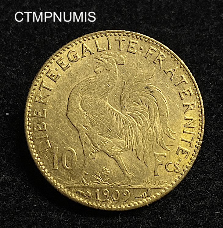 • ,MONNAIE,10,FRANCS,OR,COQ,1909, MONNAIE FRANCAISE 10 FRANCS OR COQ 1909 430.00€