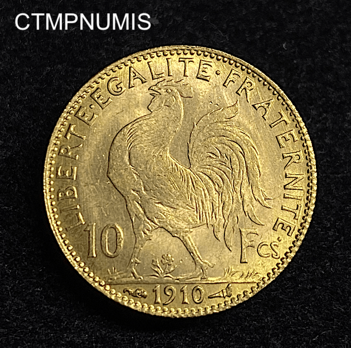 • ,MONNAIE,10,FRANCS,OR,COQ,1910, MONNAIE FRANCAISE 10 FRANCS OR COQ 1910 SUP 395.00€
