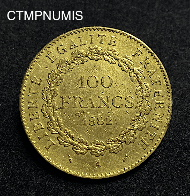 MONNAIE FRANCAISE 100 FRANCS OR GENIE III° REPUBLIQUE 1882 A PARIS