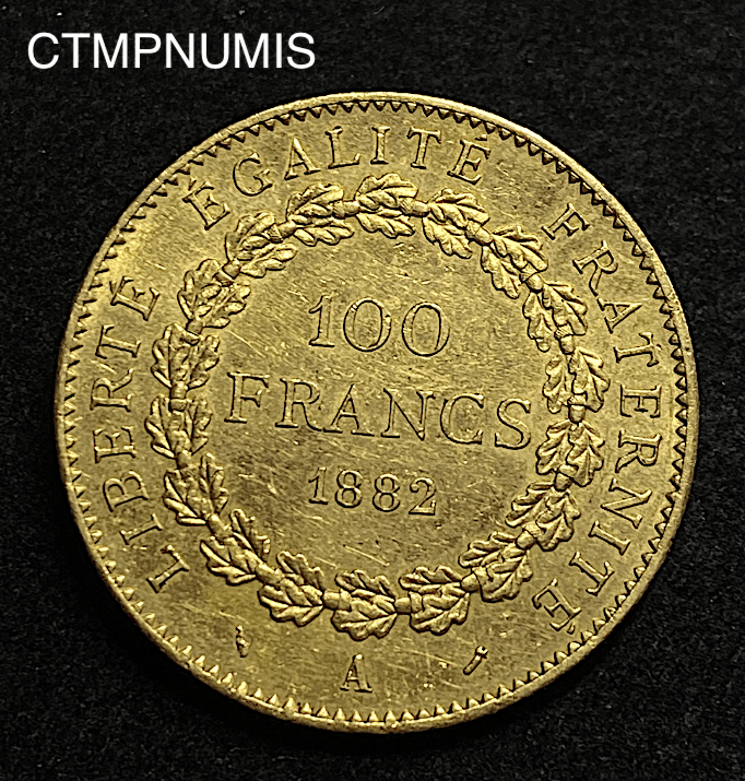 MONNAIE FRANCAISE 100 FRANCS OR GENIE III° REPUBLIQUE 1882 A PARIS