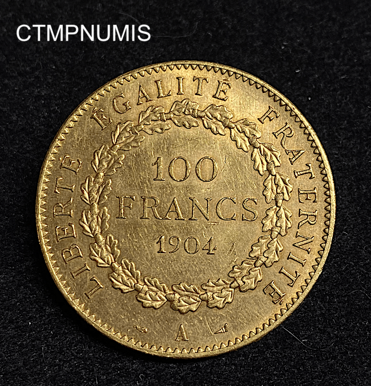 MONNAIE FRANCAISE 100 FRANCS OR GENIE III° REPUBLIQUE 1904 A PARIS SUP