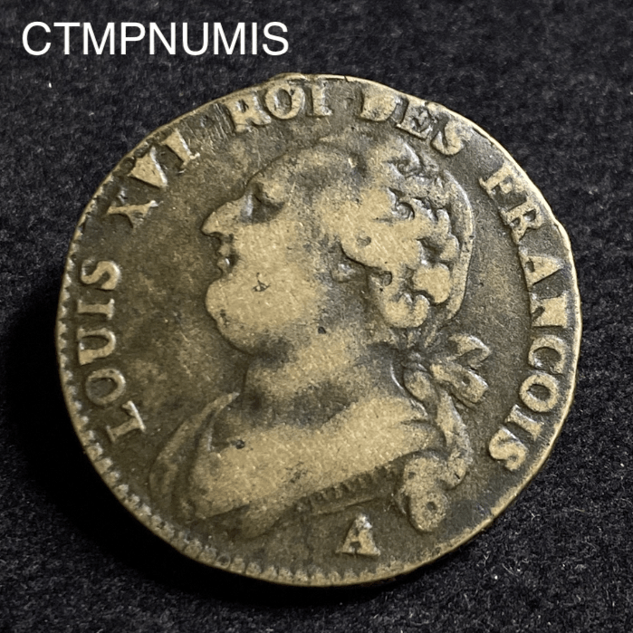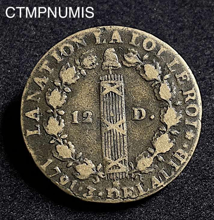 MONNAIE FRANCAISE 12 DENIERS LOUIS XVI CONSTITUTION 1792 A PARIS REVOLUTION