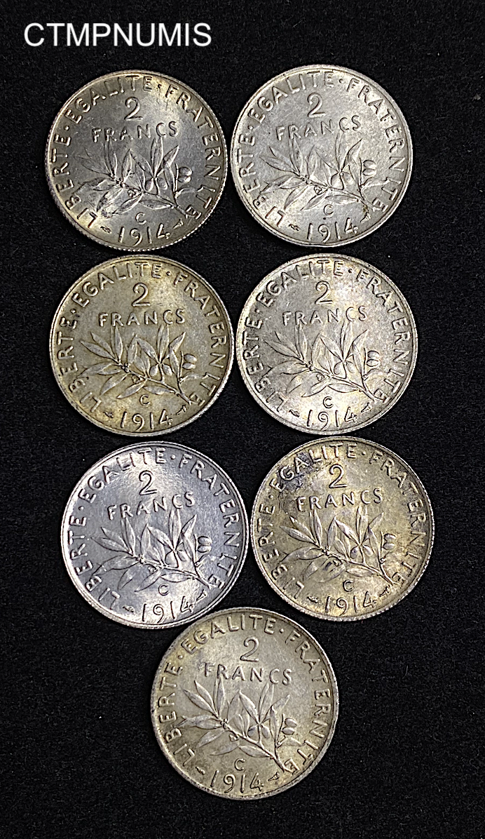 MONNAIE FRANCAISE 2 FRANCS ARGENT SEMEUSE 1914 C CASTELSARRAZIN SUP LOT DE 7 EXEMPLAIRES