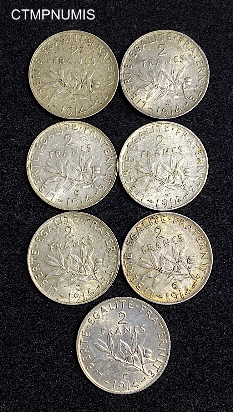 MONNAIE FRANCAISE 2 FRANCS ARGENT SEMEUSE 1914 C CASTELSARRAZIN TTB LOT DE 7 EXEMPLAIRES