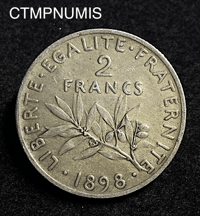 UGS : A.36 Catégories : 19ème Siècle, 2 Francs, Argent, Françaises, Modernes, Or Étiquettes : 1898, 2, argent, FLAN, FRANCS, MAT, MONNAIE, SEMEUSE