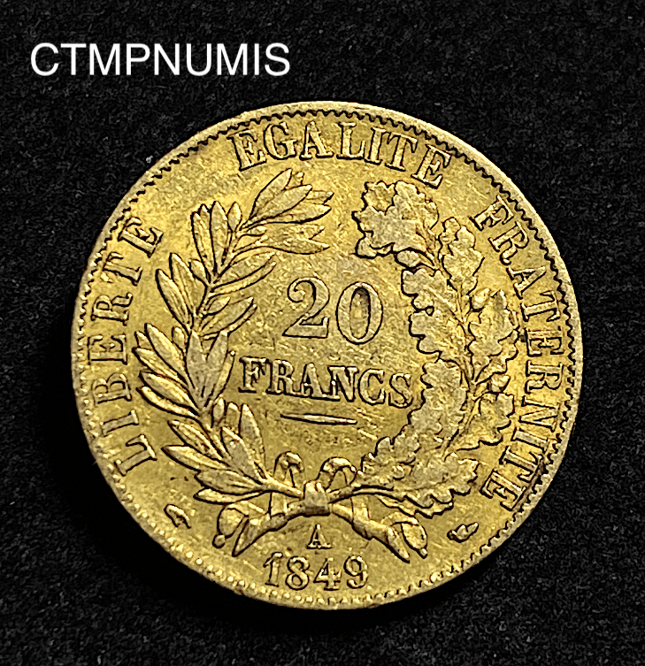 MONNAIE FRANCAISE 20 FRANCS OR CERES II° REPUBLIQUE 1849 A PARIS