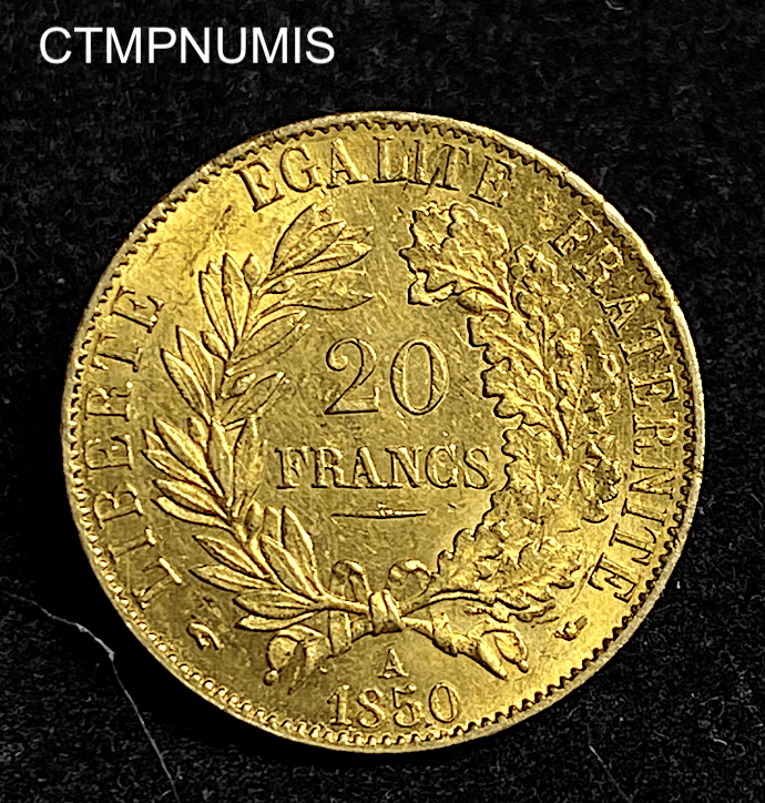 MONNAIE FRANCAISE 20 FRANCS OR CERES II° REPUBLIQUE 1850 A PARIS SUP