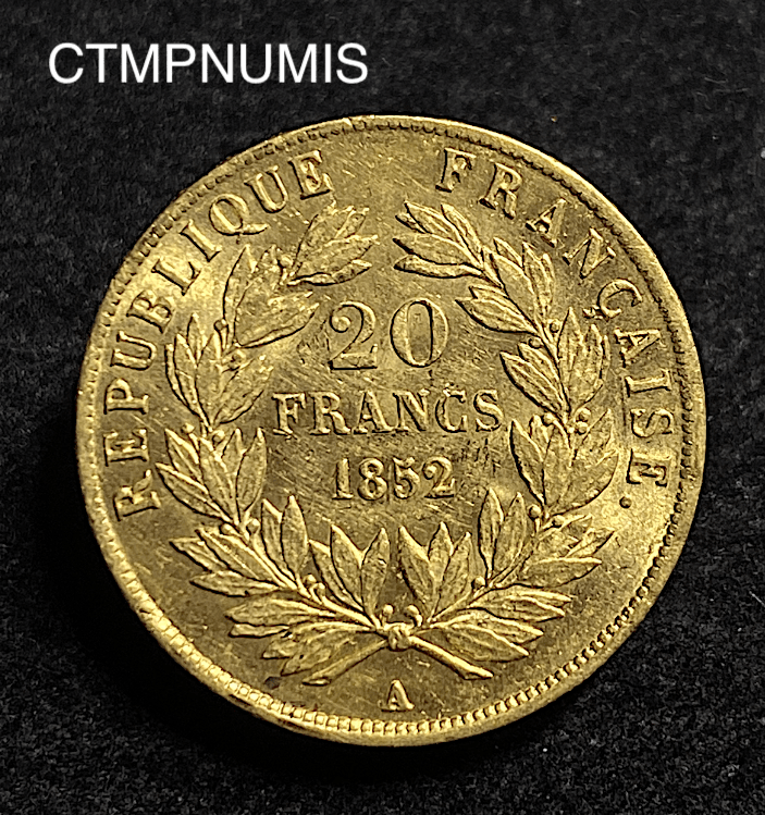 MONNAIE FRANCAISE 20 FRANCS OR LOUIS NAPOLEON BONAPARTE 1852 A PARIS SUP
