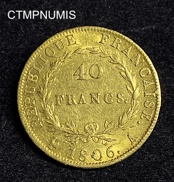 MONNAIE FRANCAISE 40 FRANCS OR NAPOLEON EMPEREUR REPUBLIQUE 1806 A PARIS TTB