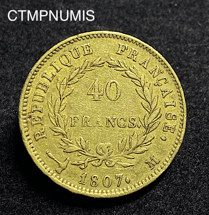 MONNAIE FRANCAISE 40 FRANCS OR NAPOLEON EMPEREUR REPUBLIQUE 1807 M TOULOUSE