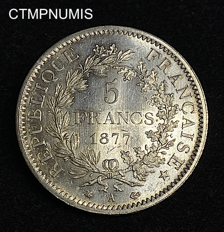 MONNAIE FRANCAISE 5 FRANCS ARGENT HERCULE 1877 A PARIS SPL