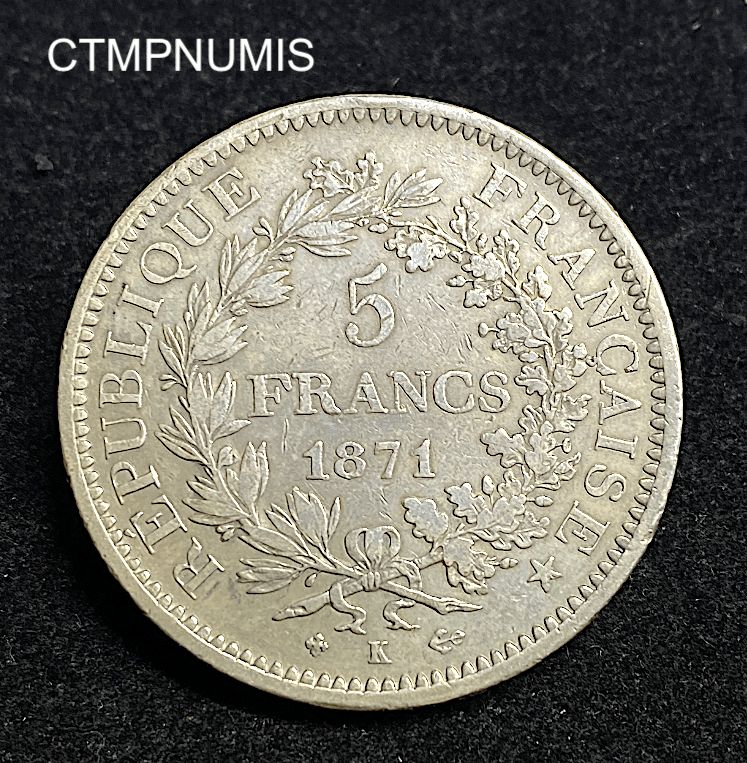 Catégories : 19ème Siècle, 5 Francs, Argent, Françaises, Modernes, Monnaies Étiquettes : 1871, 5, argent, BORDEAUX, FRANCS, HERCULE, K, MONNAIE