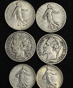 MONNAIE FRANCAISE LOT DE 6 MONNAIES ARGENT 1 ET 2 FRANCS