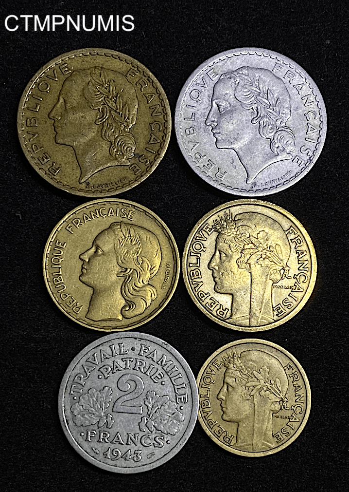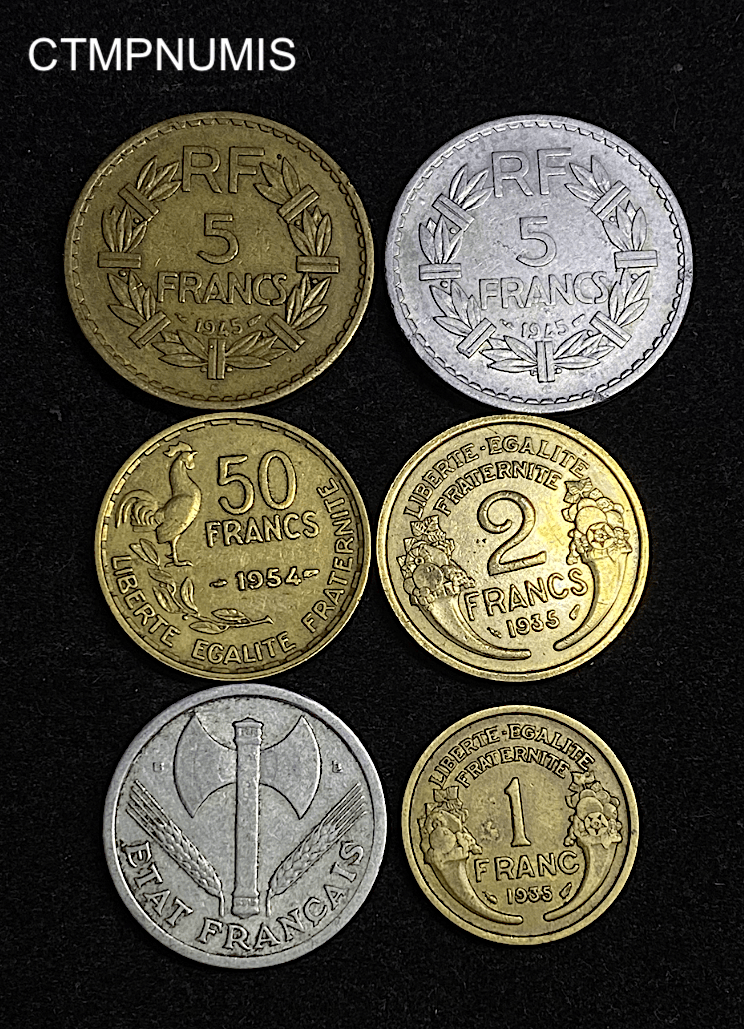 • ,MONNAIE,FRANCAISE,LOT,DE,6,MONNAIES,RARE, MONNAIE FRANCAISE LOT DE 6 MONNAIES DATES PEU COMMUNES 50.00€