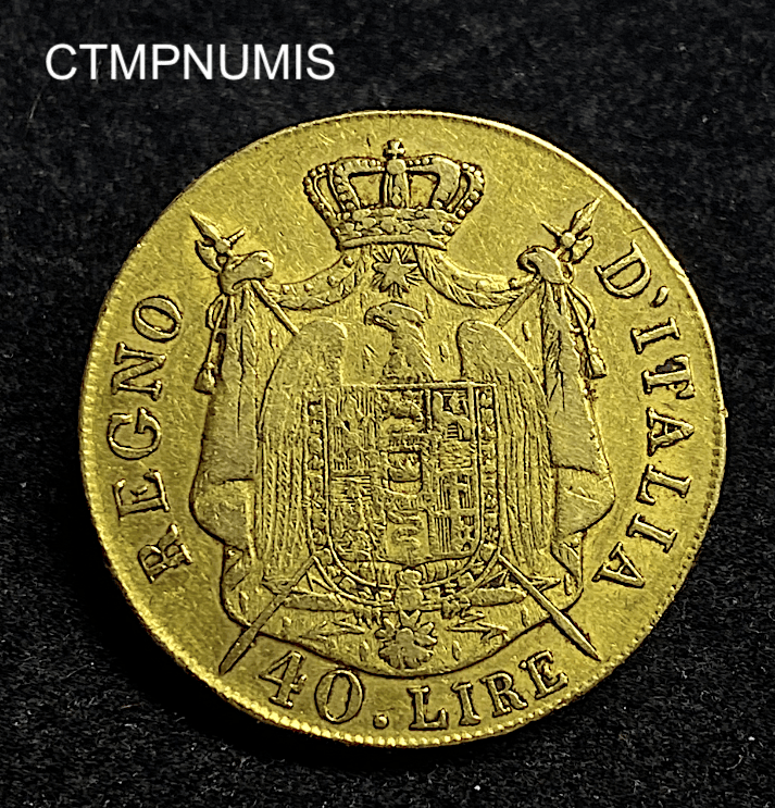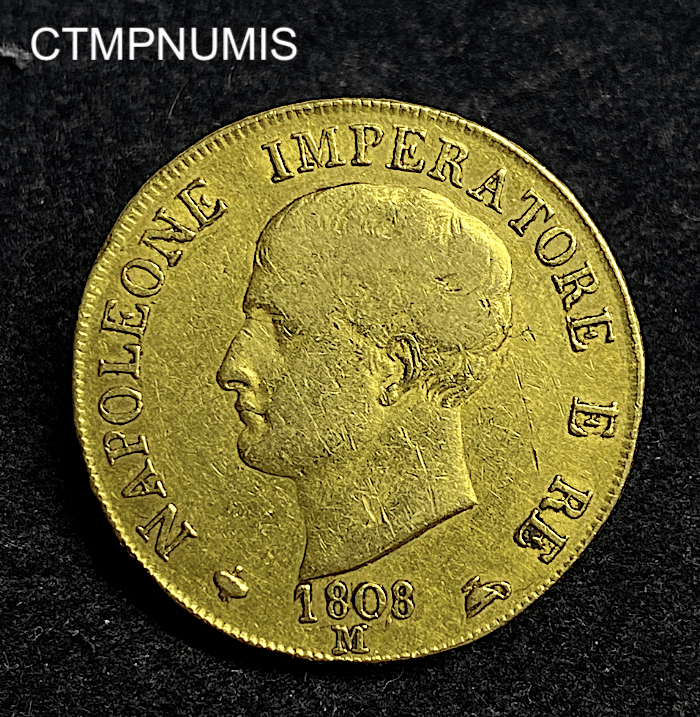MONNAIE ITALIE 40 LIRE OR NAPOLEON EMPEREUR 1808 M MILAN