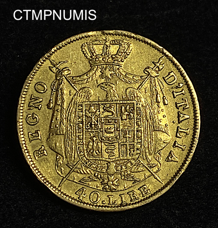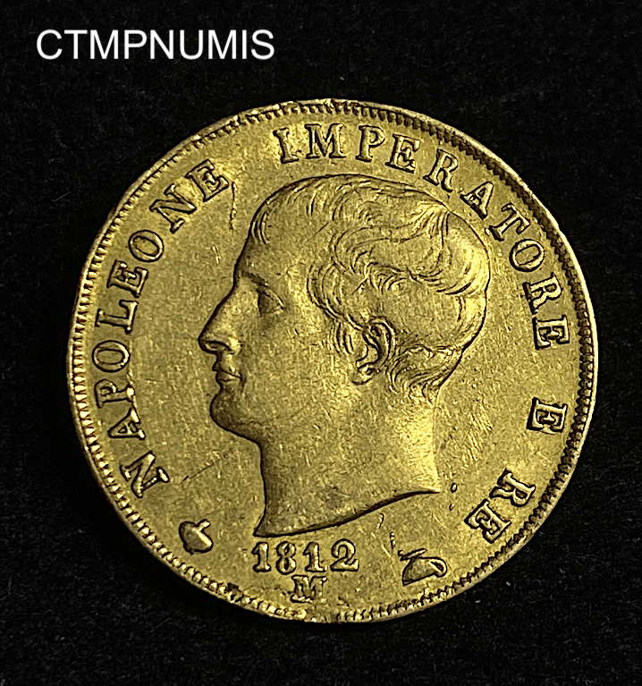 MONNAIE ITALIE 40 LIRE OR NAPOLEON EMPEREUR 1812 M MILAN AGUZZI RARE