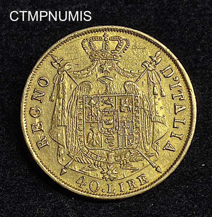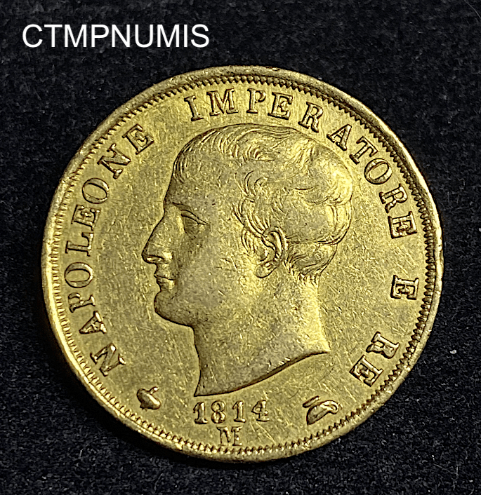 MONNAIE ITALIE 40 LIRE OR NAPOLEON EMPEREUR 1814 M MILAN