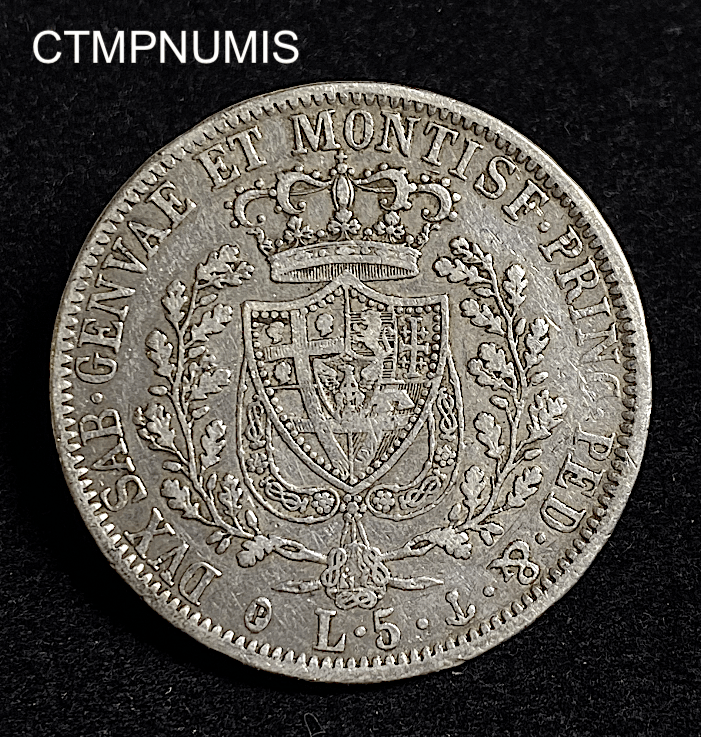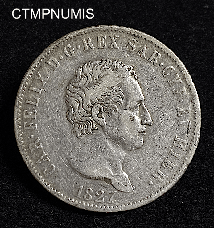MONNAIE ITALIE 5 LIRE ARGENT CHARLES FELIX SARDAIGNE 1827 GENES