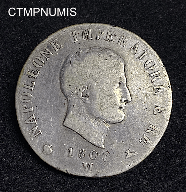 MONNAIE ITALIE 5 LIRE ARGENT NAPOLEON I° 1807 M MILAN