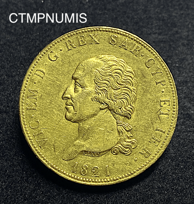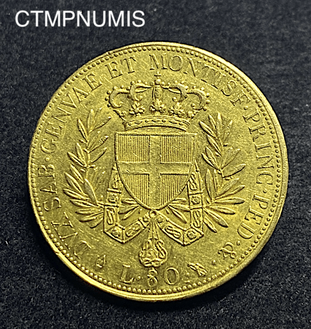 MONNAIE ITALIE 80 LIRE OR SARDAIGNE VICTOR EMMANUEL 1821 TURIN TRES RARE