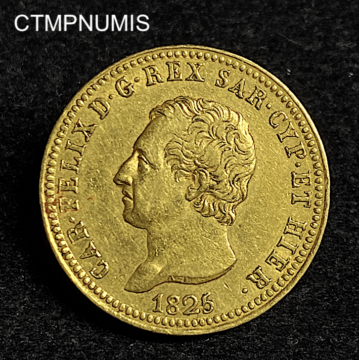 • ,MONNAIE,ITALIE,40,LIRE,OR,1825,TURIN, MONNAIE ITALIE SARDAIGNE 40 LIRE OR CHARLES FELIX 1825 TURIN 1,550.00€