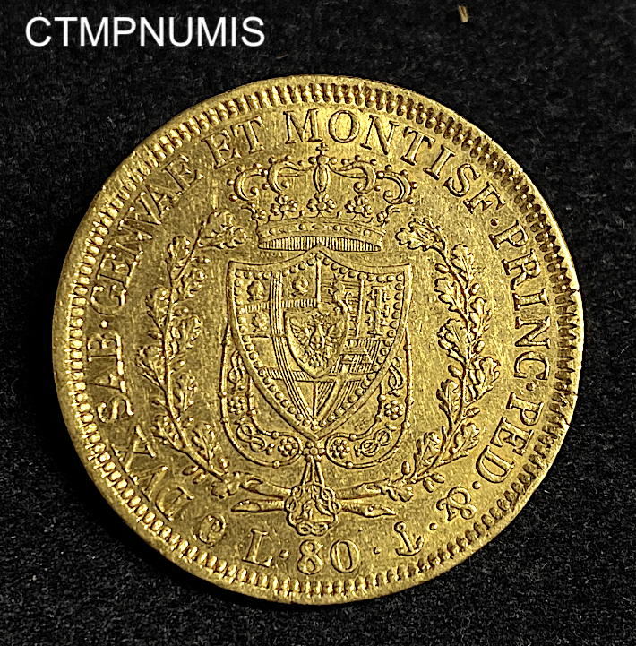 MONNAIE ITALIE SARDAIGNE 80 LIRE OR CHARLES FELIX 1830 GENES