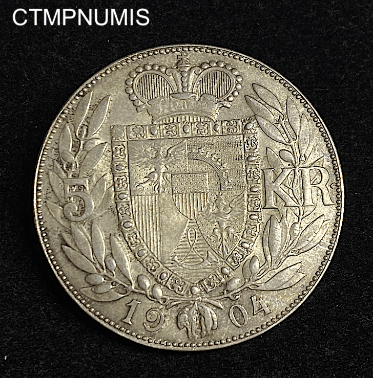 MONNAIE LIECHTENSTEIN 5 COURONNES KRONER ARGENT 1904 SUP