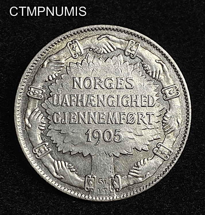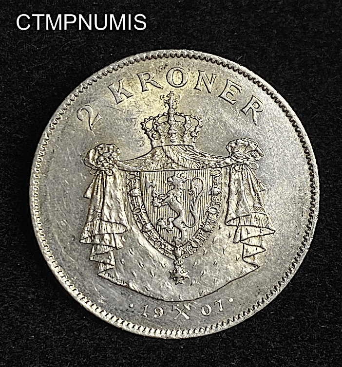• ,MONNAIE,NORVEGE,2,KRONER,ARGENT,1907, MONNAIE NORVEGE 2 KRONER ARGENT 1907 SUP 140.00€