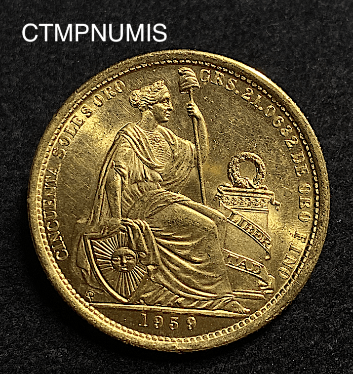 MONNAIE PEROU 50 SOLES OR 1959 LIMA 21,06 gr OR FIN SPL 5,734 EX.