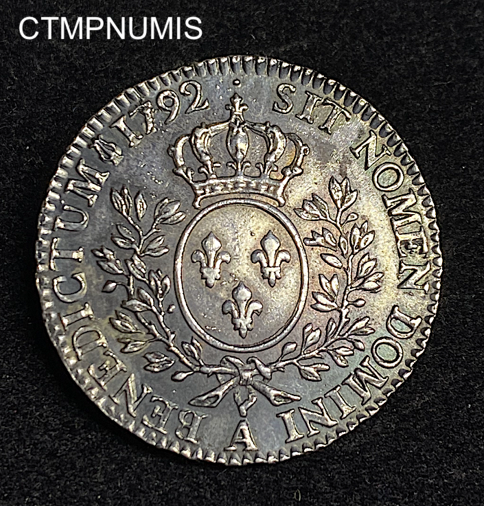 MONNAIE ROYALE 1/2 ECU ARGENT AUX BRANCHES D’OLIVIER LOUIS XVI 1792 A PARIS