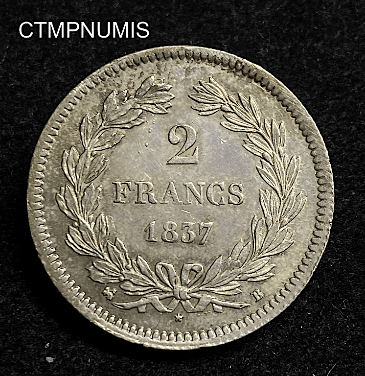 MONNAIE ROYALE 2 FRANCS ARGENT LOUIS PHILIPPE 1837 B ROUEN SUP